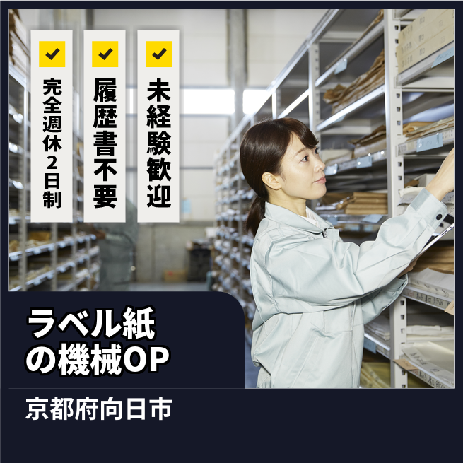 給与詳細 月収例 234,000円 時給例 1,200円 勤務地 京都府向日市 仕事内容 機械オペレーター、検品、出荷作業他