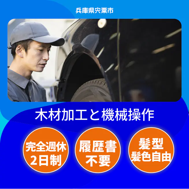 給与詳細 月収例 200,000円 日給例 10,000円 勤務地 兵庫県宍粟市 仕事内容 【業務内容】木材加工と機械操作による住宅用部品の製造