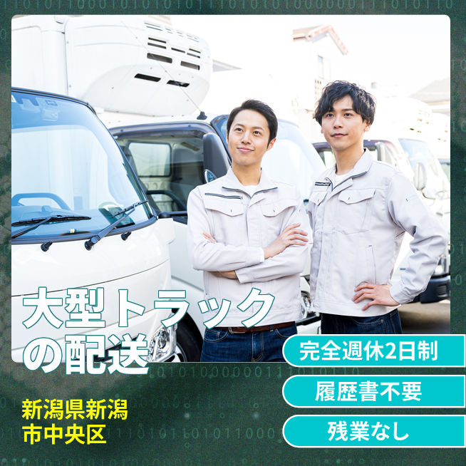 給与詳細 月収例 263,250円 日給例 10,800円 勤務地 新潟県新潟市中央区 仕事内容 トラックドライバー。大型トラックを県内の配送先まで運転します。積み込み、下ろしはしません。