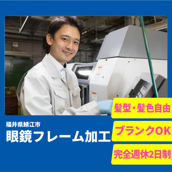 給与詳細 月収例 192,000円 時給例 1,280円 勤務地 福井県鯖江市 仕事内容 【業務内容】眼鏡フレームの製造工程におけるプレス加工および切断・曲げ作業