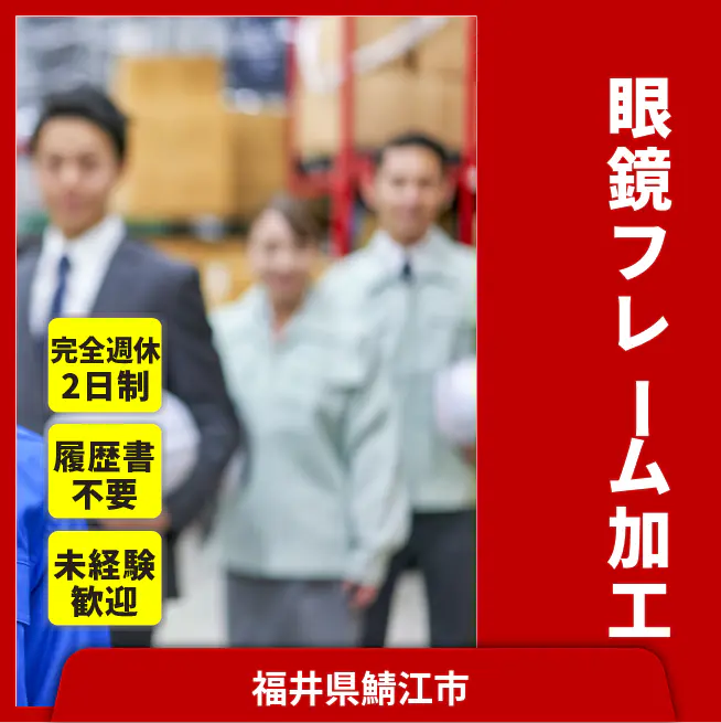 給与詳細 月収例 192,000円 時給例 1,280円 勤務地 福井県鯖江市 仕事内容 【業務内容】眼鏡フレームの製造工程におけるプレス加工および切断・曲げ作業