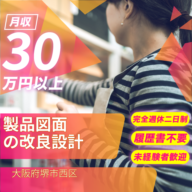 給与詳細 月収例 332,800円 時給例 2,080円 勤務地 大阪府堺市西区 仕事内容 \製品の図面づくり・改良設計スタッフ募集/
