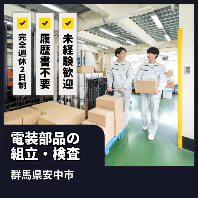 自動車のナビやオーディオ電装部品の組立と検査、マシンオペレーター業務