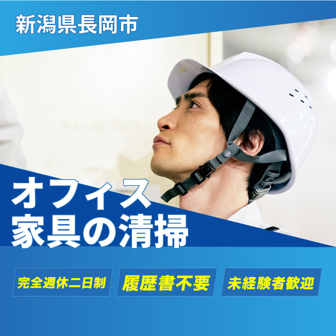 給与詳細 月収例 243,750円 日給例 10,000円 勤務地 新潟県長岡市 仕事内容 備品のメンテナンス業務です。オフィスで使用する机や椅子を洗ったり拭いたりするお仕事です。