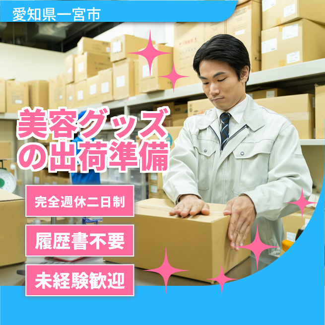 給与詳細 月収例 271,700円 日給例 13,585円 勤務地 愛知県一宮市 仕事内容 【業務内容】美容グッズの出荷業務