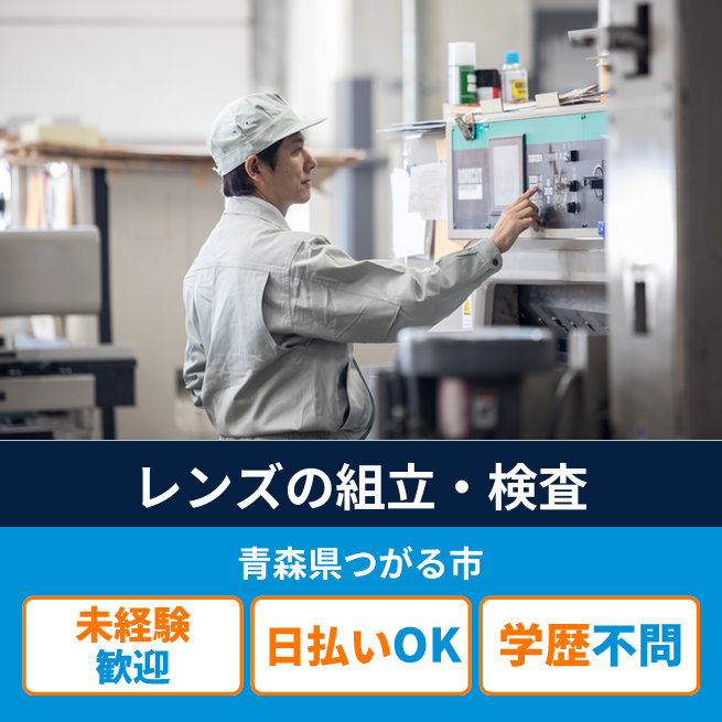 給与詳細 月収例 189,530円 時給例 1,050円 勤務地 青森県つがる市 仕事内容 【カメラレンズの組立・検査】
