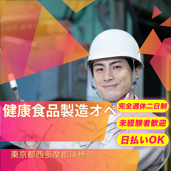 給与詳細 月収例 234,000円 日給例 10,400円 勤務地 東京都西多摩郡瑞穂町 仕事内容 【業務内容】