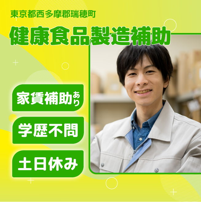 給与詳細 月収例 234,000円 日給例 10,400円 勤務地 東京都西多摩郡瑞穂町 仕事内容 【業務内容】