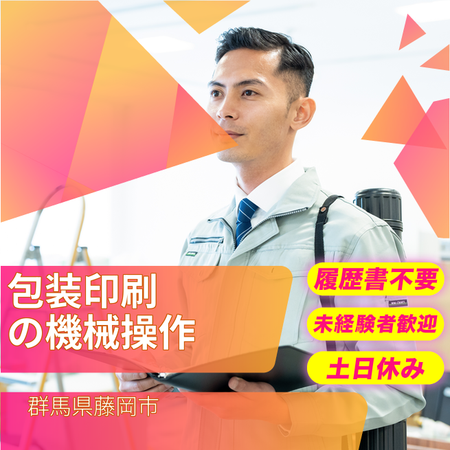 給与詳細 月収例 293,780円 日給例 10,000円 勤務地 群馬県藤岡市 仕事内容 ★【日勤】商品パッケージの印刷機オペレーター作業(ロール紙セット、ロール紙カット、清掃)