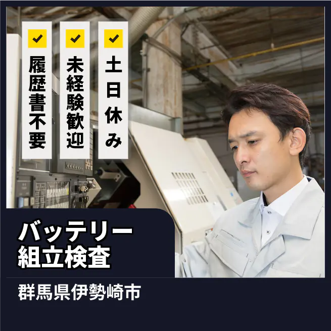 給与詳細 月収例 192,000円 時給例 1,200円 勤務地 群馬県伊勢崎市 仕事内容 【業務内容】
