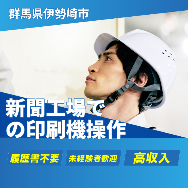 給与詳細 月収例 229,064円 日給例 11,200円 勤務地 群馬県伊勢崎市 仕事内容 ★新聞社の印刷工場で印刷機オペレーター(給紙作業、印刷版のセット、内容確認)