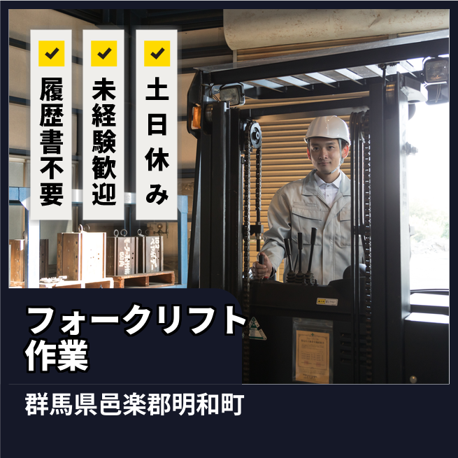 給与詳細 月収例 227,500円 日給例 10,400円 勤務地 群馬県邑楽郡明和町 仕事内容 【業務内容】