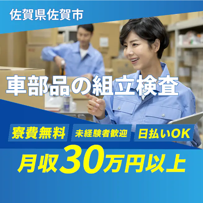【車部品の組立検査】4986九州での新生活を応援!寮費無料&月収33.3万円以上可能♪