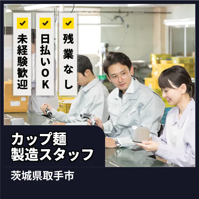 【カップ麺製造スタッフ】2775夜型さんにぴったり!夕方から始まる軽作業、時給1700円!