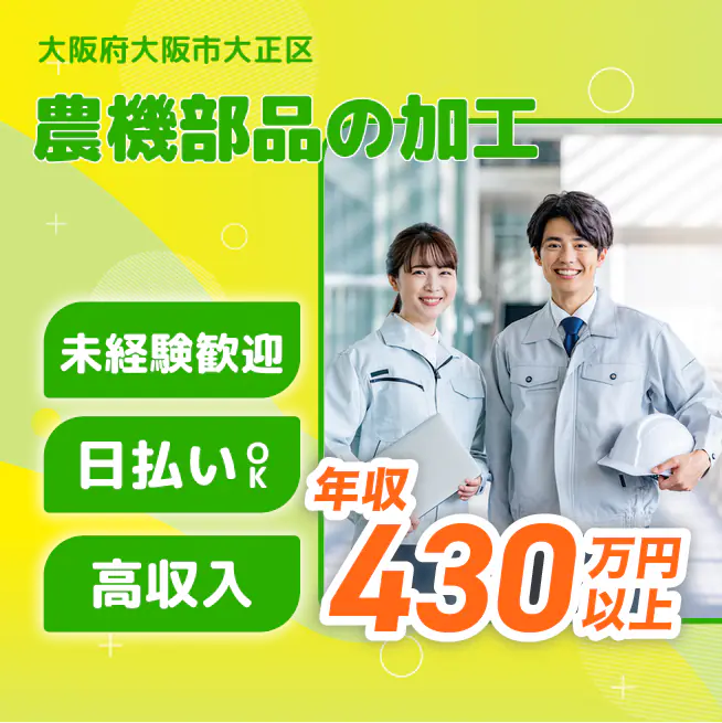 【業務内容】 農業機械の部品製造を行う工場での作業 <業務例一覧> - 鋳造ラインで鉄の型を機械にセットし、ボタン操作で加工を行う - フォークリフトを使用して鋳物素材を運搬(※フォークリフト資格必要) - エンジン部品のバリ取りや手直し、表面の研磨作業 - グラインダーなどの工具でトラクタ部品のバリ取りを実施 - 鋳造ラインで使用する型の組立やバリ取り作業 - ショットブラストを用いた部品磨きと表面仕上げを行う - スプレーや刷毛での塗布剤コーティングと部品検査 - トラクタ部品を機械にセットし、ボタン操作で加工 - クレーンやフォークリフトで鉄くずを運搬し、溶解機械へ投入(※クレーンやフォークリフト資格必要) ATR3
