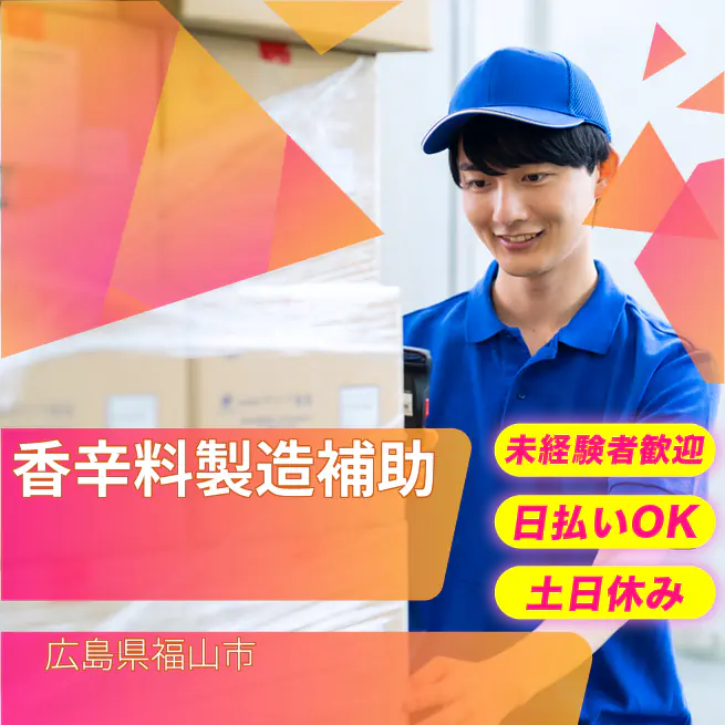 【業務内容】 調味料や香辛料の製造工場での製造サポート業務 <業務例一覧> - 原料を運搬し、指定の機械に投入する作業 - 機械のボタン操作を行い、製品の加工をサポートする - 完成品を包装し、ダンボールに詰める作業 - 製造ライン上での製品の検品を行う - 日勤または夜勤のシフトを選択し、柔軟に勤務する ATR3