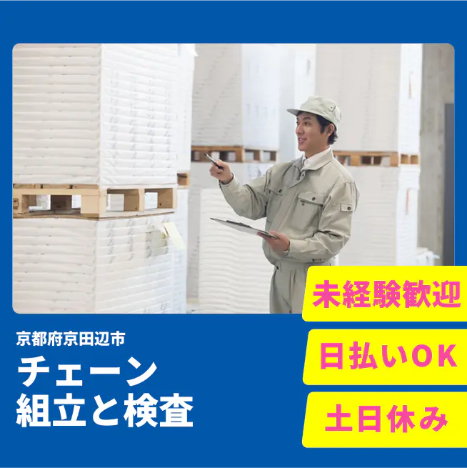 安心の昼勤務【チェーン組立と検査】10905「初めてでも安心♪日勤のみで土日がお休み!新しいキャリアをここから始めよう」