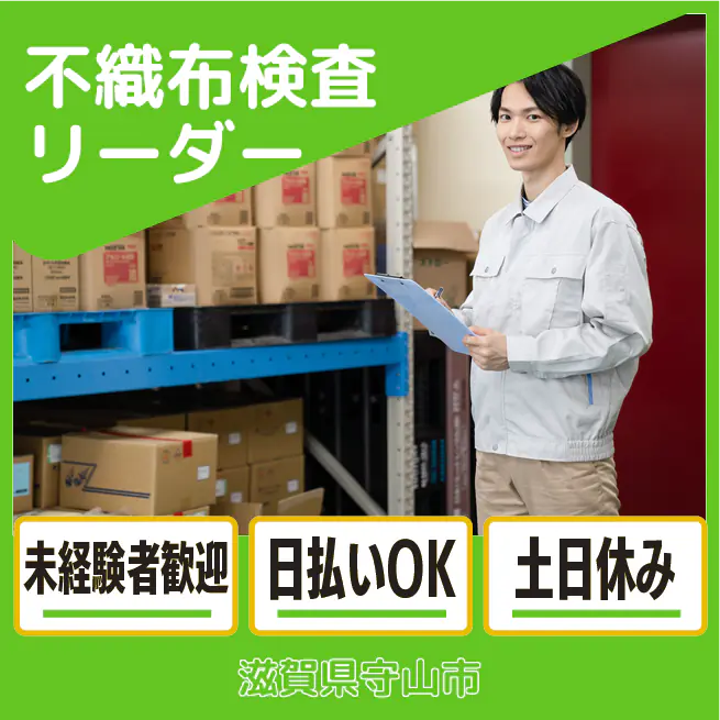 • 【検査部署のリーダー候補スタッフ】 『未経験から現場リーダーへキャリアアップ!』 #契約社員 #土日祝休み #守山駅より徒歩13分 #日報チェックや勤怠管理 #朝までの夜勤ナシ # #2交替 #特別手当あり #残業月10時間以内 (1)検査部署のリーダー候補募集!徐々に作業に慣れていけばOK (2)朝までの夜勤なしで2交替!お仕事前に用事も済ませられる (3)守山駅より徒歩13分の好立地!車・バイク通勤も交通費支給 ▽10代~50代のスタッフが活躍中 重い物を扱わないお仕事なので、 性別問わず幅広い世代の方が活躍中の職場です。 モノづくり経験のない方も先輩スタッフや社員さんが しっかりサポートするのでご安心ください。 キャリアアップを目指して頑張りましょう! 【受動喫煙対策】 受動喫煙対策あり(詳細は面接時) 将来の配置転換などによる変更の範囲 就業場所:全国/就業範囲:派遣先業務全般(詳細は就業条件明示書で明示する)