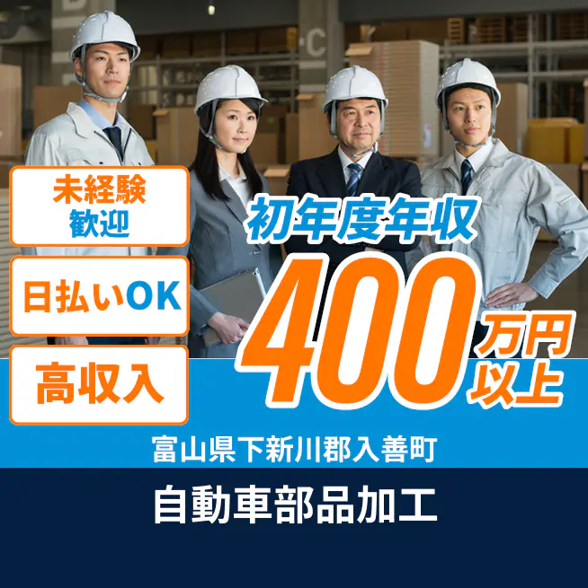 車・バイク・自転車通勤OK転勤なし【勤務地】富山県下新川郡入善町福島