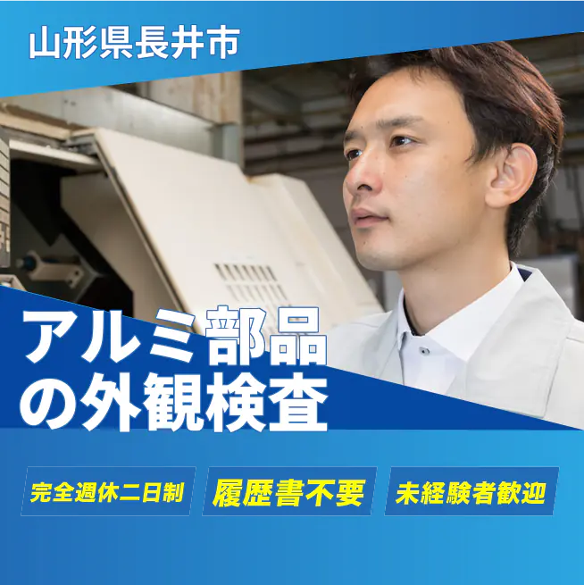 【アルミ部品の外観検査】増員募集【未経験でも安心スタート!】週末は自分時間♪土日祝しっかり休める!ちょっぴり残業で収入アップを目指そう♪