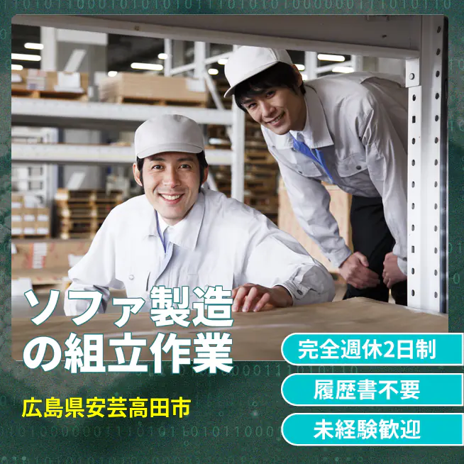 【ソファ製造の組立作業】増員募集中【未経験歓迎!】安定した業務拡大中◎週末はしっかりリフレッシュ♪新しい仲間と充実の毎日を!