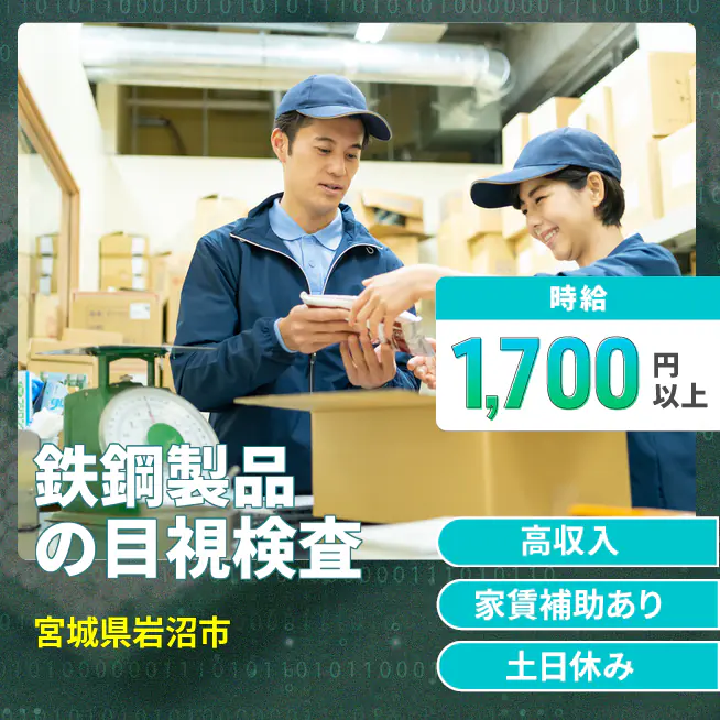 安心の昼勤務【鉄鋼製品の目視検査】資格をフル活用!社宅完備で安心♪車通勤OK!安定企業で新しいスタートを応援!