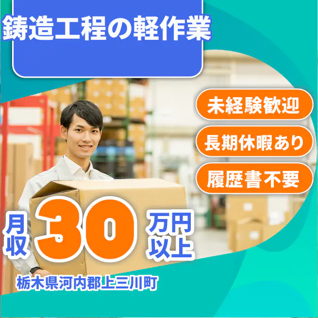 未経験OK!【鋳造工程の軽作業】未経験でも安心スタート!学歴不問で新しい挑戦を応援します♪