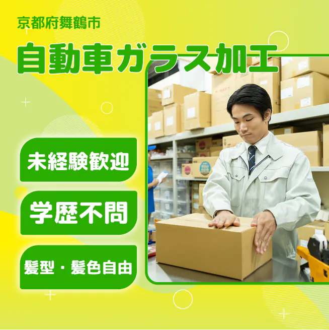 【業務内容】 自動車用ガラス製品の加工と検査を行う仕事です。 <業務例一覧> - 自動で動く機械にガラス材料をセットする作業 - 機械が加工したガラス製品の検査作業 - 簡単な部材の取り付け作業 - 完成したガラス製品の品質チェック - 製品の包装作業 ATR3