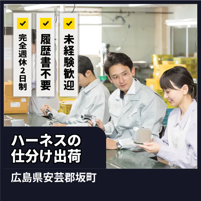 【ハーネスの仕分け出荷】週末休み☆プライベート充実!