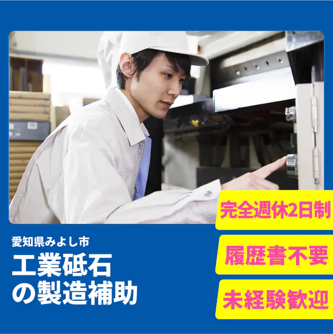安心の週休【工業砥石の製造補助】未経験でも安心スタート★しっかり稼げてプライベートも充実!若手活躍中!