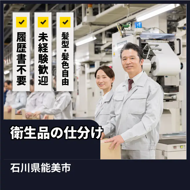 安心の日勤【衛生品の仕分け】【未経験歓迎♪】家庭と両立しながら、笑顔で働ける職場です!女性が多数活躍中!