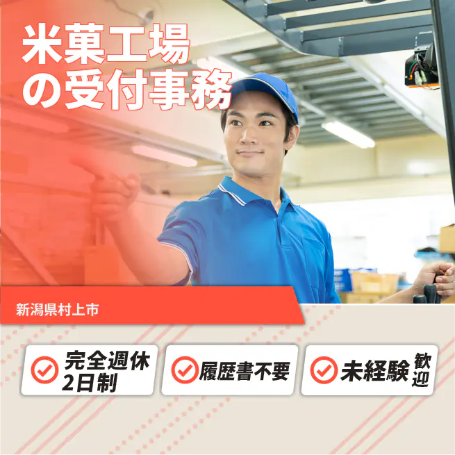 増員募集【米菓工場の受付事務】【未経験歓迎!】プライベートも大切に♪アットホームな職場で新しいスタートを★