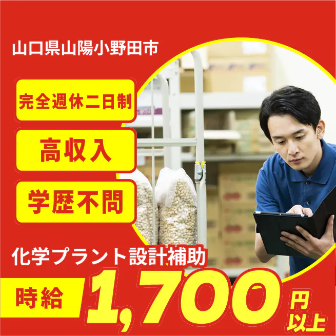 車・バイク・自転車通勤OK【勤務地】山口県山陽小野田市西高泊