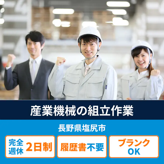経験不問【産業機械の組立作業】【経験を活かしてキャリアアップ!】残業なしでオンもオフも充実♪土日祝は自分時間を満喫!