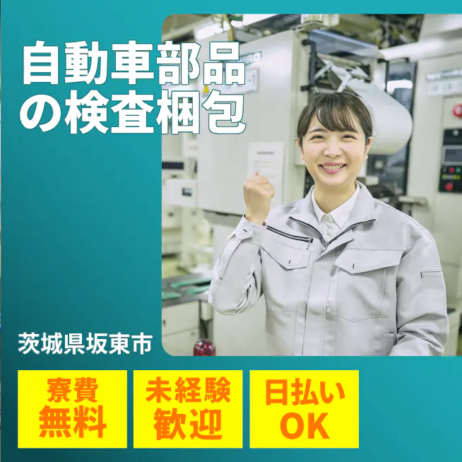 正社員登用有【自動車部品の検査梱包】日払いOK!交通費サポート充実♪あなたの成長を応援します!
