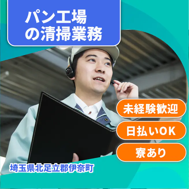未経験者歓迎!【パン工場の清掃業務】未経験でも安心スタート!充実サポートでしっかり稼げる★交通費支給&週払い制度あり♪快適な寮生活も叶います!
