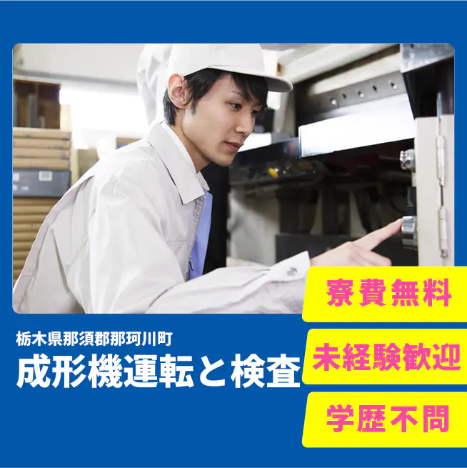 【業務内容】 成形機の操作と製品の検査を担当する仕事です。 <業務例一覧> - 成形機の操作を行い、製品を製造する - 製品の品質を確認し、検査基準を満たしているかチェックする - 機械の簡単なメンテナンスやトラブルシューティングを行う - 製造プロセスにおける安全基準を遵守する - 作業報告書や検査記録を作成する ATR3