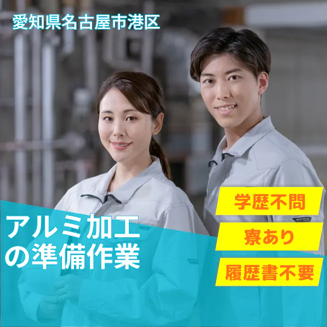 【業務内容】 アルミ製品加工の準備と補助作業 <業務例一覧> - 抽出されたアルミ管を加熱するための準備作業 - アルミの切断作業の補助 - 加工に必要な機械の点検と調整 - 加工後のアルミ製品の品質チェック - 作業場の清掃および整理整頓 ATR3