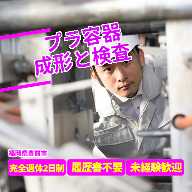 【業務内容】 プラスチック容器の製造と関連作業 <業務例一覧> - プラスチック容器の成形作業を行う - 機械を操作して製造ラインを管理する - 完成した製品を梱包する作業を担当する - 必要な製品を倉庫から取り出すピッキング作業を行う - 出荷前に製品の品質を確認する検査業務を行う - 洗剤や化粧品用のケースを扱う ATR5