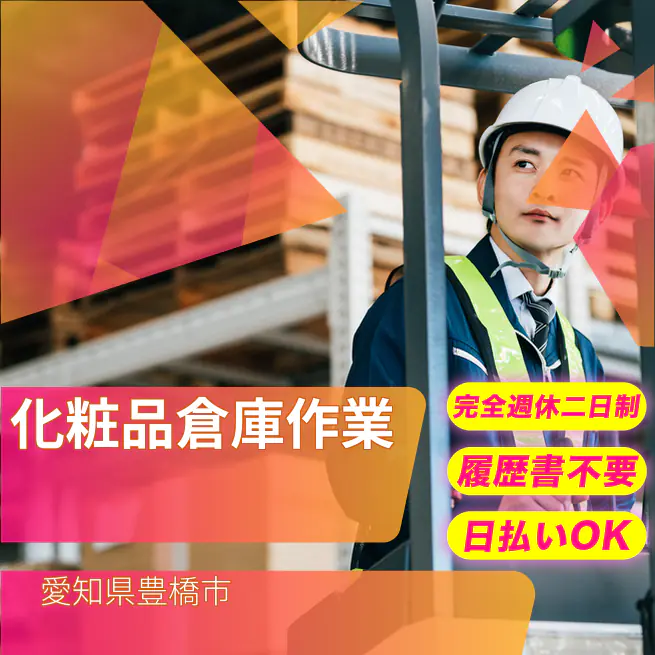 高時給可能【化粧品倉庫作業】週末はあなたの時間♪ プライベートも楽しめる職場で新しいスタートを!