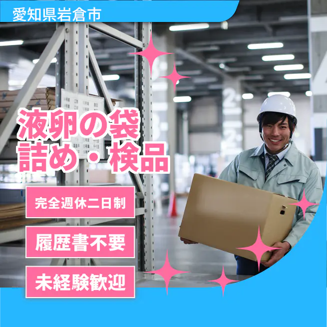 安定勤務【液卵の袋詰め・検品】家庭も大切にできる!定時退社で趣味も楽しめる職場です♪