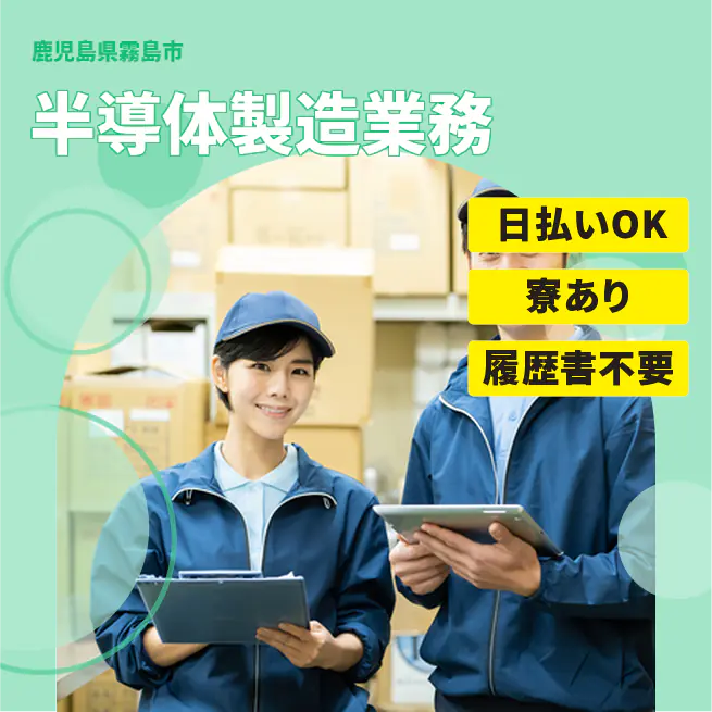 環境抜群【半導体製造業務】快適生活スタート!車通勤OK&充実の寮完備★半導体製造で新しい一歩を踏み出そう!