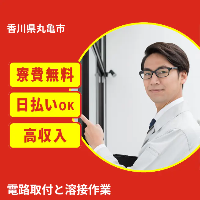 【機械オペレーター・梱包(3交替)】 ◆交替勤務の経験者募集!月収30万円以上可能!! ◆フォークリフト免許お持ちの方も大歓迎です! ◆生活備品付き1R寮完備!初期費用無料♪ ウェットティッシュなど日用雑貨品を製造している工場でのお仕事! ・製造工程での機械オペレーター業務  大きなロール状の製品を機械にセット、パネル操作にてカット、  エラーメンテナンスなど ・出来上がった製品の検品や、段ボールに箱詰めする作業  5名程のグループ作業で、協力しながら進めていきます。 はじめに丁寧に教えていただける環境なので安心してスタートできます! すぐ慣れるカンタン作業です! 綺麗で快適なクリーンルーム内作業◎ また、フォークリフトの資格をお持ち方には 構内の運搬業務もお任せしますので、作業経験がある方も大歓迎です♪ 食事は1食350円のお弁当を注文可能! 食事スペースをご用意しているので、 休憩も兼ねてゆっくり過ごしていただけます。 GW・夏季・年末年始には長期休暇もあるので プライベートの予定が立てやすいのも魅力です! ◆観音寺市に新工場が設立し、新工場へ異動の可能性もあり。 まずはお問い合わせからでも大歓迎です♪ 是非ご応募お待ちしております! ーーーーーーーーーーーーーーーーーーーーーーー ハローワークでお探しの方も 新着求人・工場内作業・ものづくり製造求人など 多数扱っておりますので、 ぜひご応募お待ちしております。 ーーーーーーーーーーーーーーーーーーーーーーー ATR3