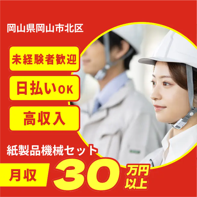 車・バイク・自転車通勤OK転勤なし送迎あり【勤務地】岡山県岡山市北区御津宇垣