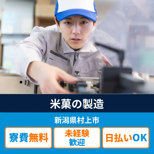 清潔環境【米菓の製造】「車通勤OK!長期休暇でリフレッシュ♪☆寮完備で新生活も安心◎未経験からスタートしよう!」