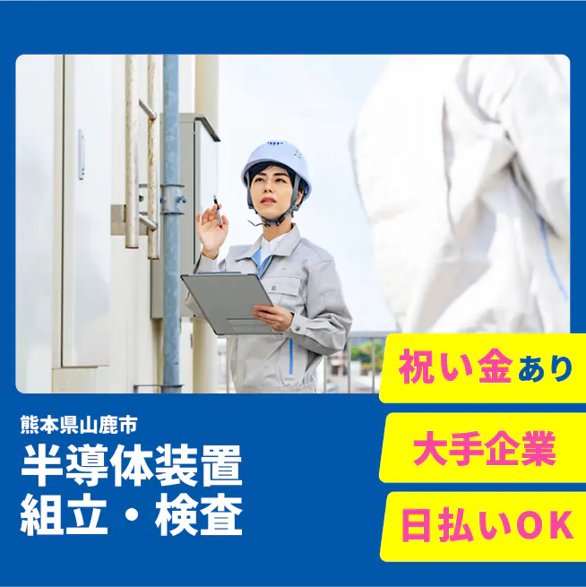 高時給魅力【半導体装置組立・検査】あなたの新しいスタートを応援!便利な車通勤&寮完備で安心の環境★長期休暇も満喫♪