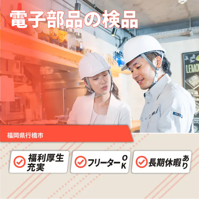 【電子パーツの検品・箱詰め】 『座り作業あり、日勤勤務、力仕事なし。 無理なく続けられる働きやすさ』 #家具家電付きワンルーム完備 #20~40代活躍中 #寮費0円 #4日毎に2連休 #スマホでサクッと日払いOK #大手メーカーで働く #赴任交通費全額支給 (1)急ぐより、細やかで丁寧な性格が強い武器に!未経験の方もぞくぞくスタート (2)家具家電完備、半年間の寮費無料。日払いもあって手持ちが少なくても安心スタート (3)平日5連勤って意外とツライ…4日毎に2連休でリフレッシュの質も上がります◎ ▼新生活も安心サポート! 現地担当者が入寮後の困りごともすぐ解決! スーパーや病院など周辺情報も丁寧にお伝えし、 快適な生活をサポートします。 【受動喫煙対策】 受動喫煙対策あり(詳細は面接時) 将来の配置転換などによる変更の範囲 就業場所:全国/就業範囲:派遣先業務全般(詳細は就業条件明示書で明示する)