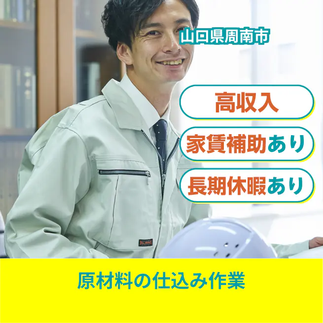 【職場】仕事は慣れるまではきついですが、相談しやすい職長も近くにおり安心して就業できます。困りごと等相談しやすいです。 【周辺】近くにスーパー、コンビニもあり、新幹線の駅がある徳山駅が2駅ほどであり休日も充実できます。 【受動喫煙対策】 有:屋内禁煙(屋外に喫煙場所あり) 将来の配置転換などによる変更の範囲 就業場所:無/就業範囲:無