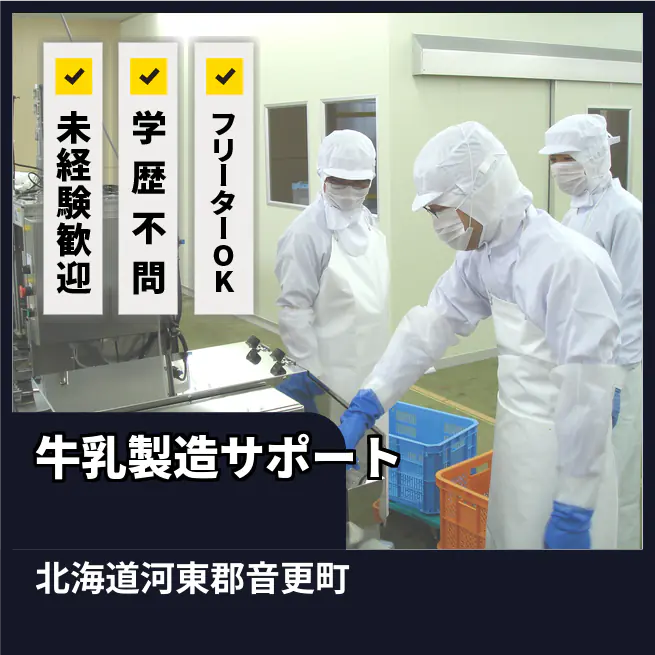 通勤ラクラク【牛乳製造サポート】\未経験大歓迎!クリーンルームで快適勤務♪/地元でのびのび働ける牛乳製造スタッフ募集!