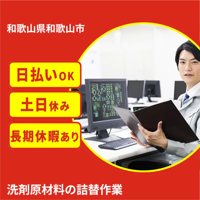 【洗剤原材料の詰替作業】日勤で月収例25万円★土日祝休★石鹸・洗剤などの大手メーカー